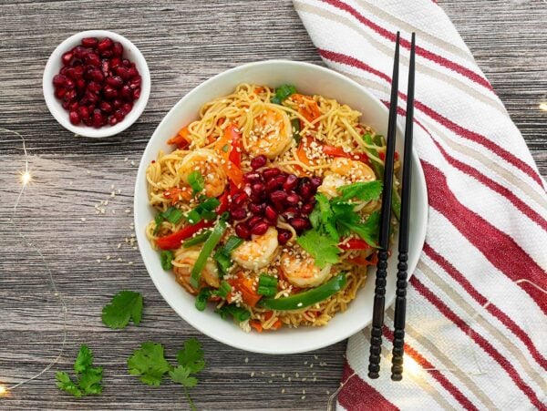 Festive Shrimp & Brown Rice Holiday Noodles