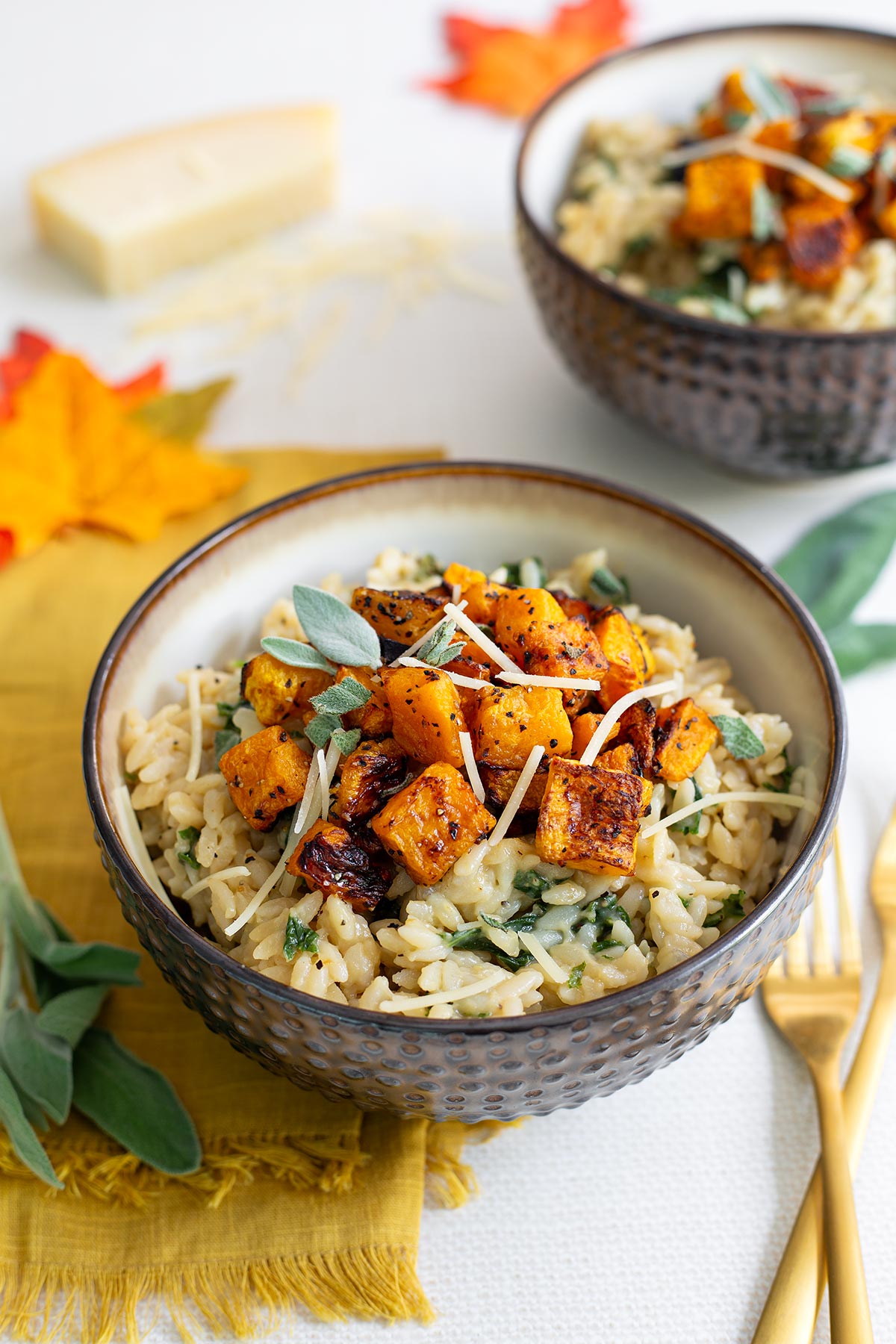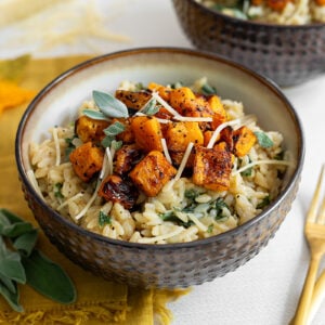 • Weeknight-friendly: Roasting squash while the orzo cooks means this dish comes together in under an hour.