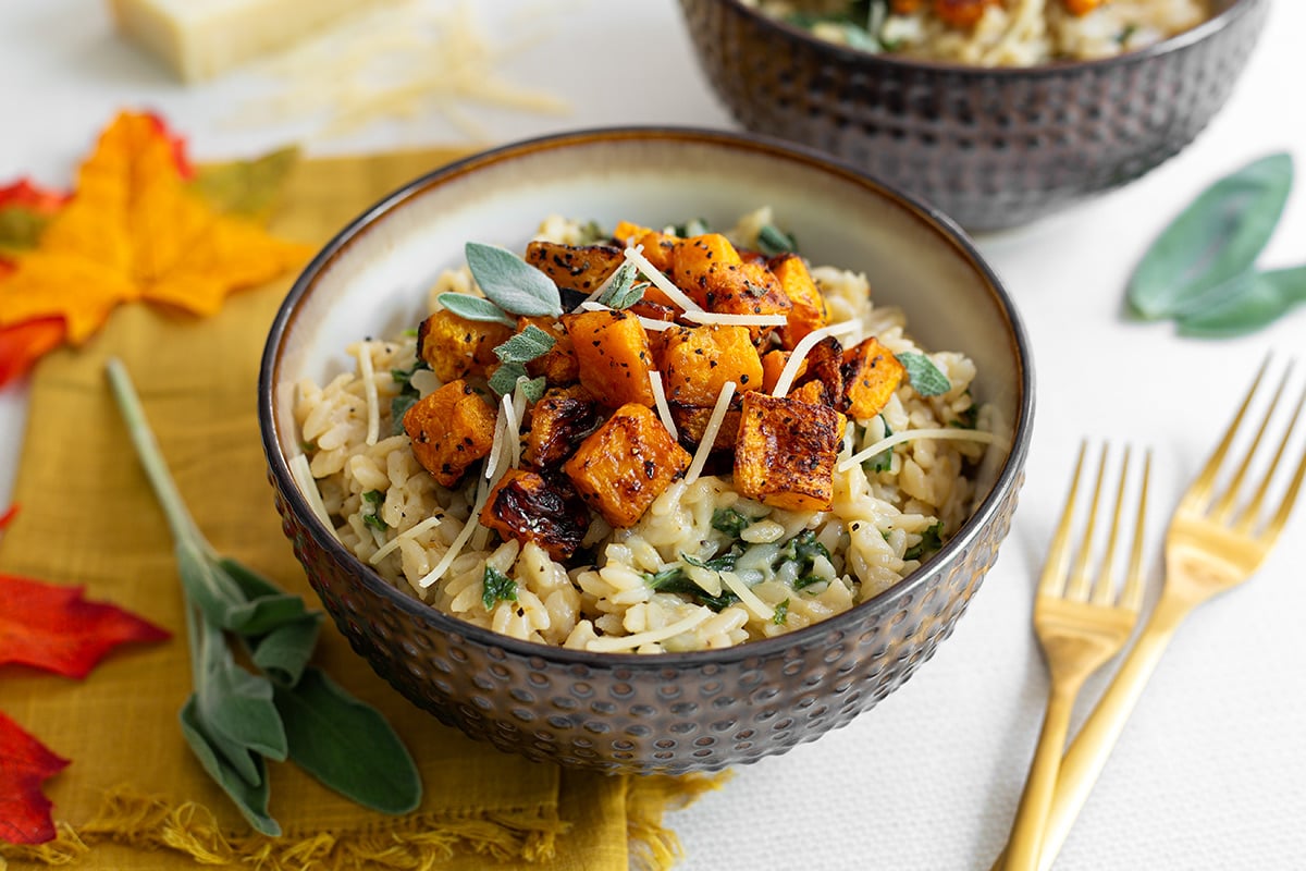 Gluten-Free Creamy Orzo with Roasted Butternut Squash, Kale & Parmesan