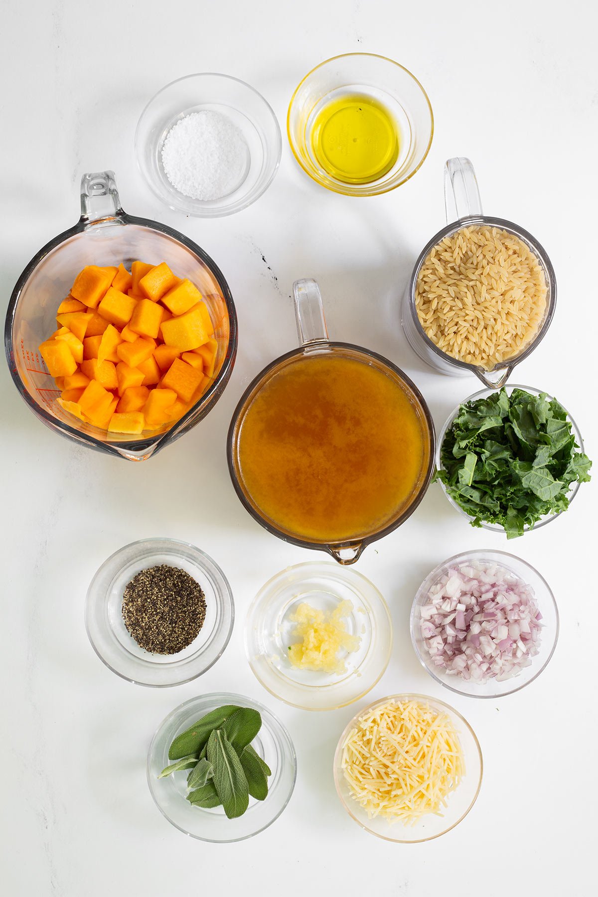 Here are the key ingredients to make this gluten-free orzo pasta with roasted butternut squash: