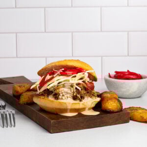 These Dominican-Inspired Pulled Pork Sandwiches are a vibrant twist on a classic comfort food favorite. With tender citrus-braised pork, creamy Ponzu Thousand Island, and bright, crunchy toppings, they deliver the perfect balance of richness and freshness. Whether you’re feeding a crowd or simply want a flavor-packed sandwich night, this recipe is guaranteed to impress.