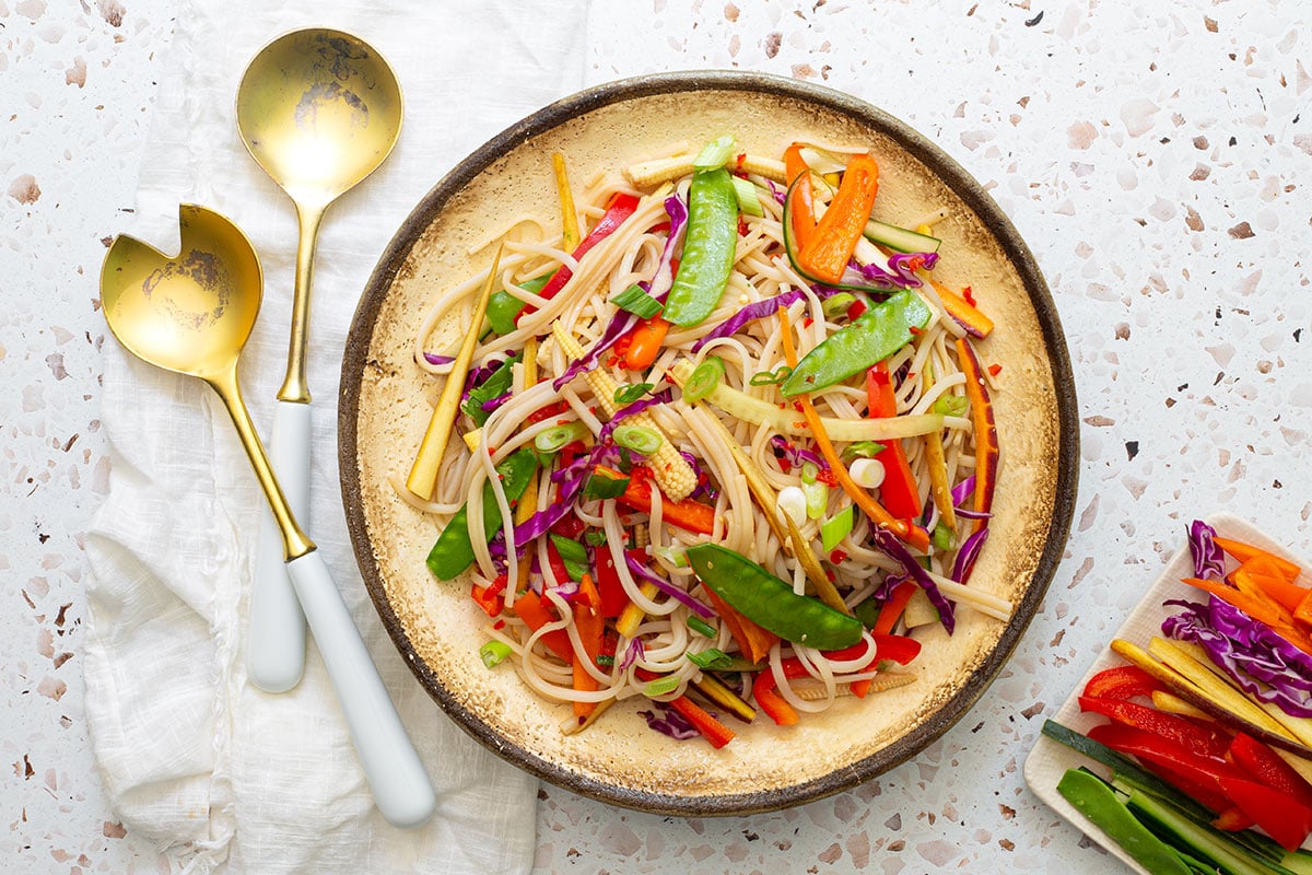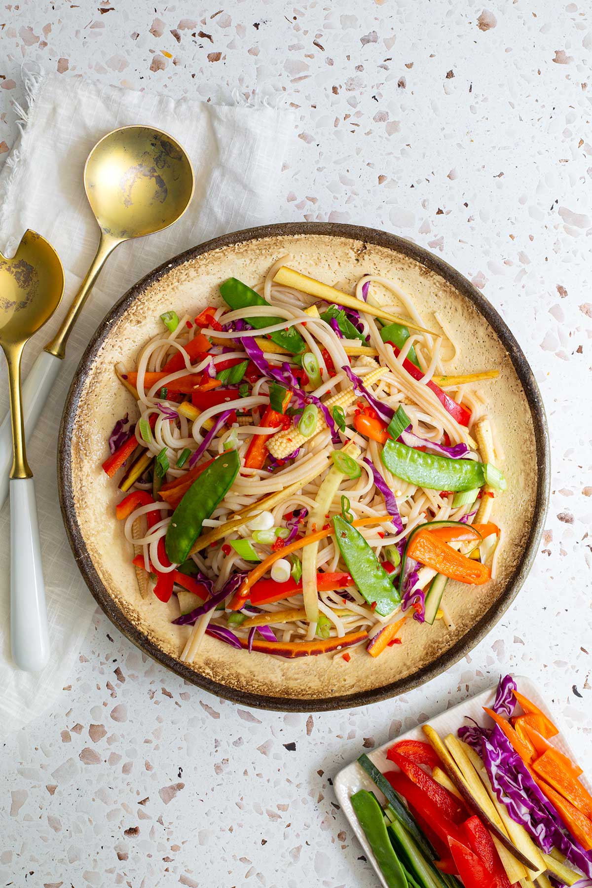 To make this gluten-free cold noodle and vegetable salad, you’ll need:
