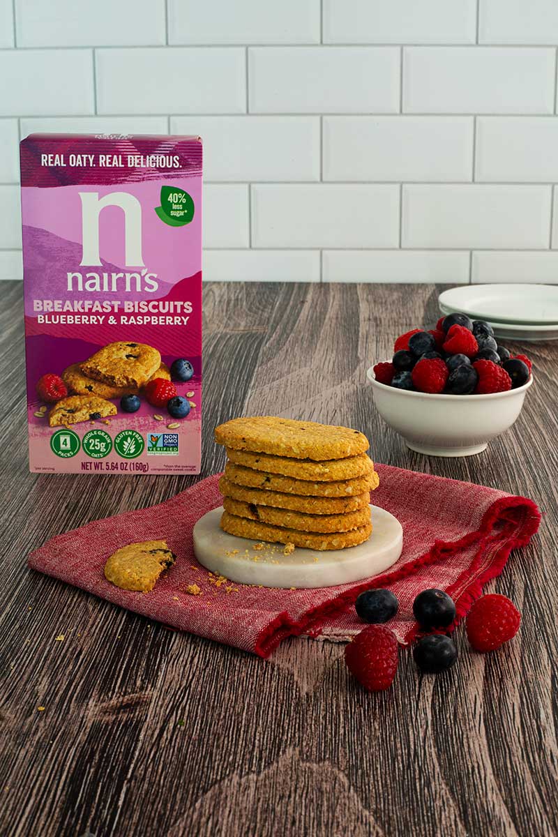 Busy mornings meet wholesome flavor with Nairn’s Gluten-Free Blueberry and Raspberry Breakfast Biscuits. Made with gluten-free oats, these lightly sweet biscuits are perfect for on-the-go breakfasts or a quick mid-morning snack when winter schedules get hectic.