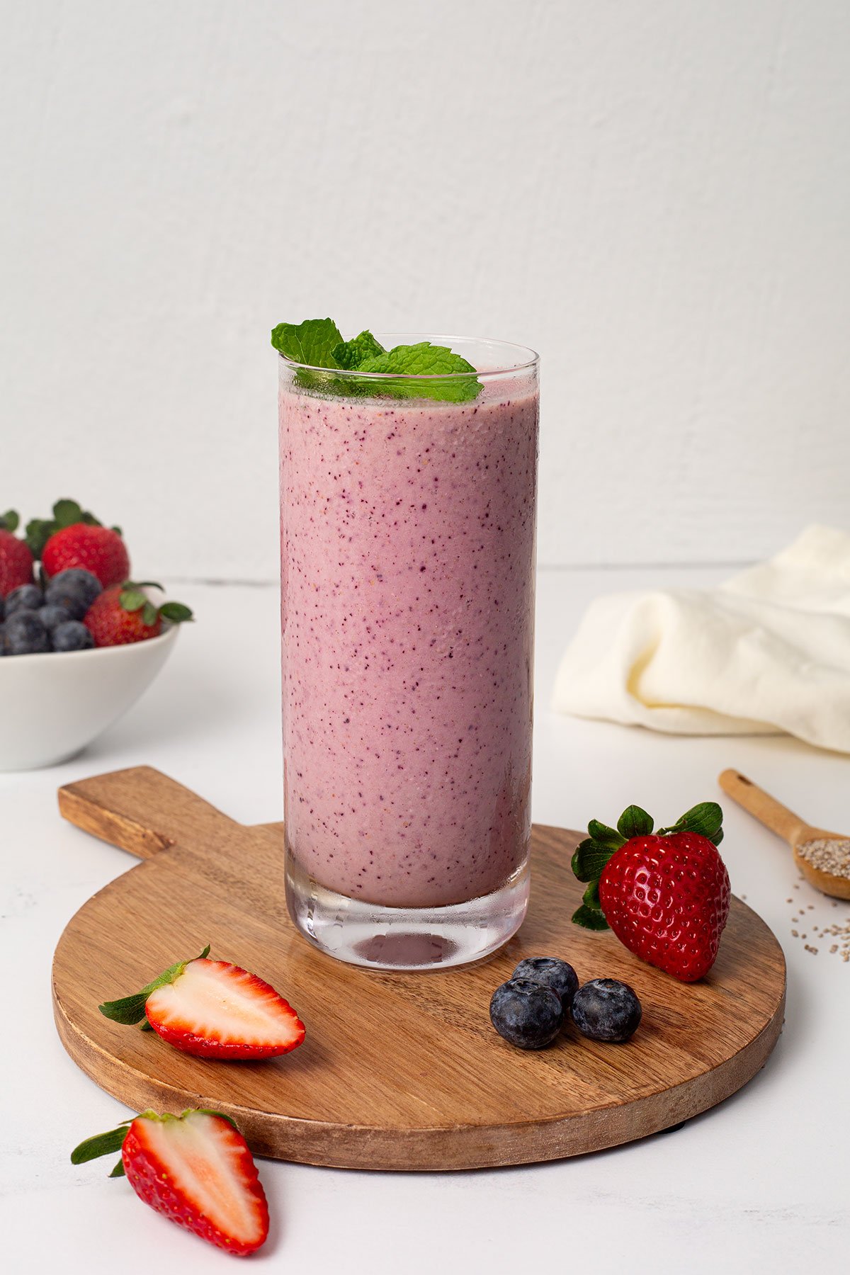 To make these high-protein almond butter and berry smoothies, you’ll need: