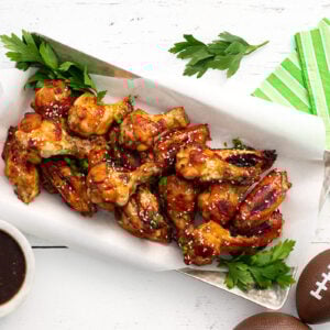 If your crowd loves extra-saucy wings, make a little more glaze and brush it on during the last few minutes of baking.