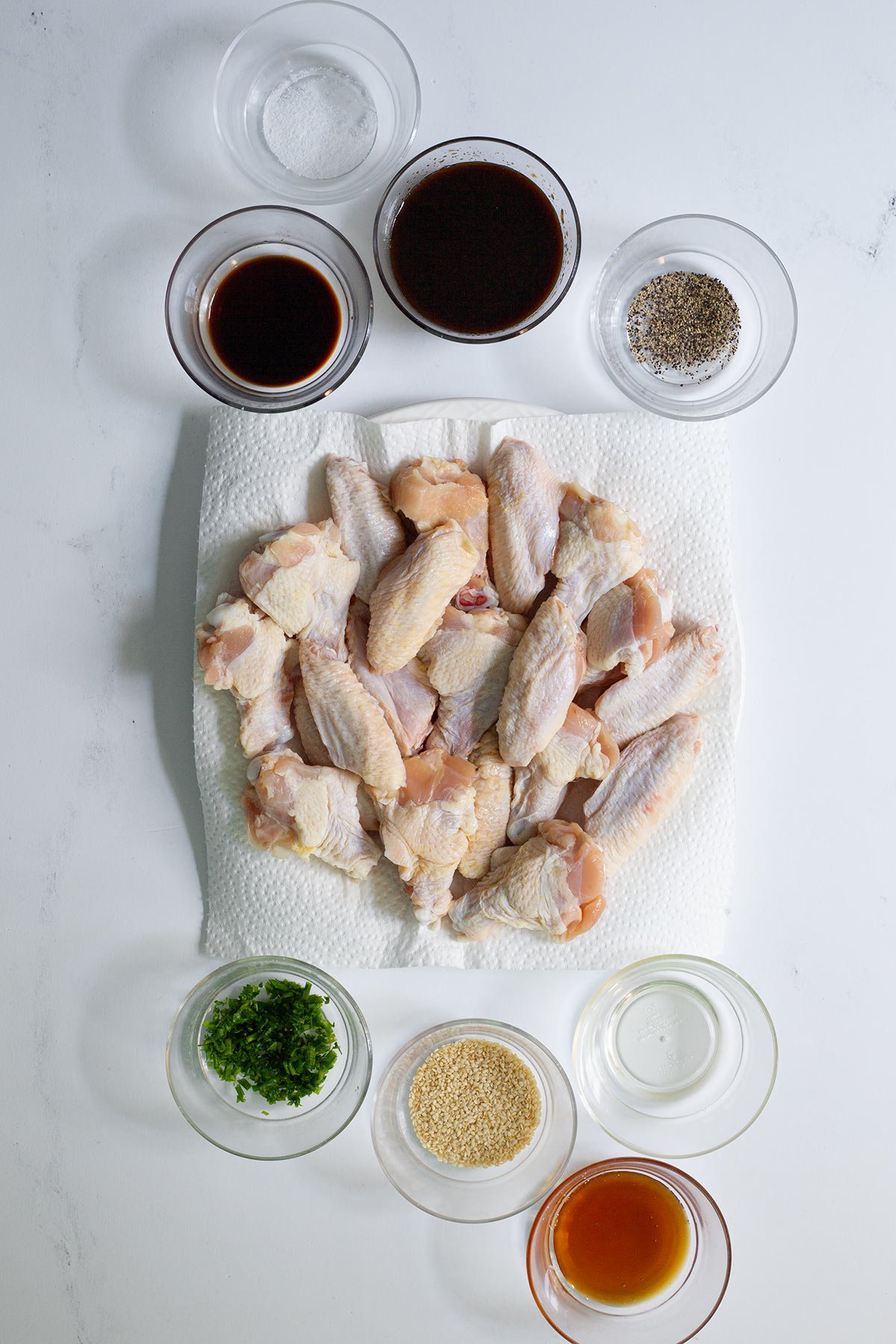 - 2 ½ pounds chicken wings, drumettes and flats