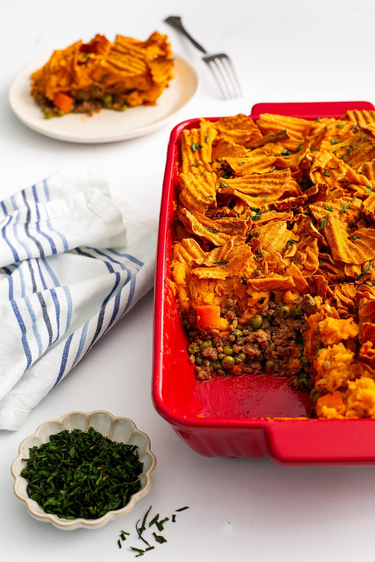Then, topping everything with creamy sweet potatoes creates that classic contrast between hearty and smooth that makes this dish so comforting. Finally, the crisp topping adds a finishing touch that brings both texture and visual appeal.