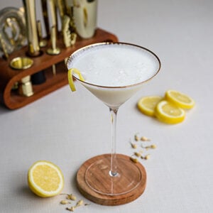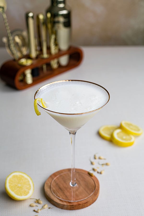 Imagine serving this martini after a dinner of creamy gluten-free fettuccine Alfredo, hearty lasagna, or a fresh caprese salad. The lemon and white chocolate combination offers a lovely contrast to rich, savory flavors—almost like ending your meal with a sip of lemon cheesecake in liquid form.