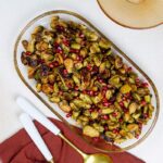 Transfer roasted Brussels sprouts to a serving bowl. Drizzle with the Sudachi Ponzu glaze and toss to coat. Sprinkle pomegranate seeds on top.