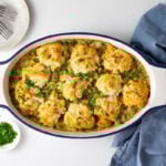 Bake for 30 to 35 minutes, until the topping is puffed, set in the center, and lightly golden, and the filling is bubbling around the edges.