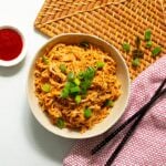 Add the cooked noodles to the skillet. Toss until every strand is coated in the spicy-peanut sauce. Top with the reserved green onion tops and serve.