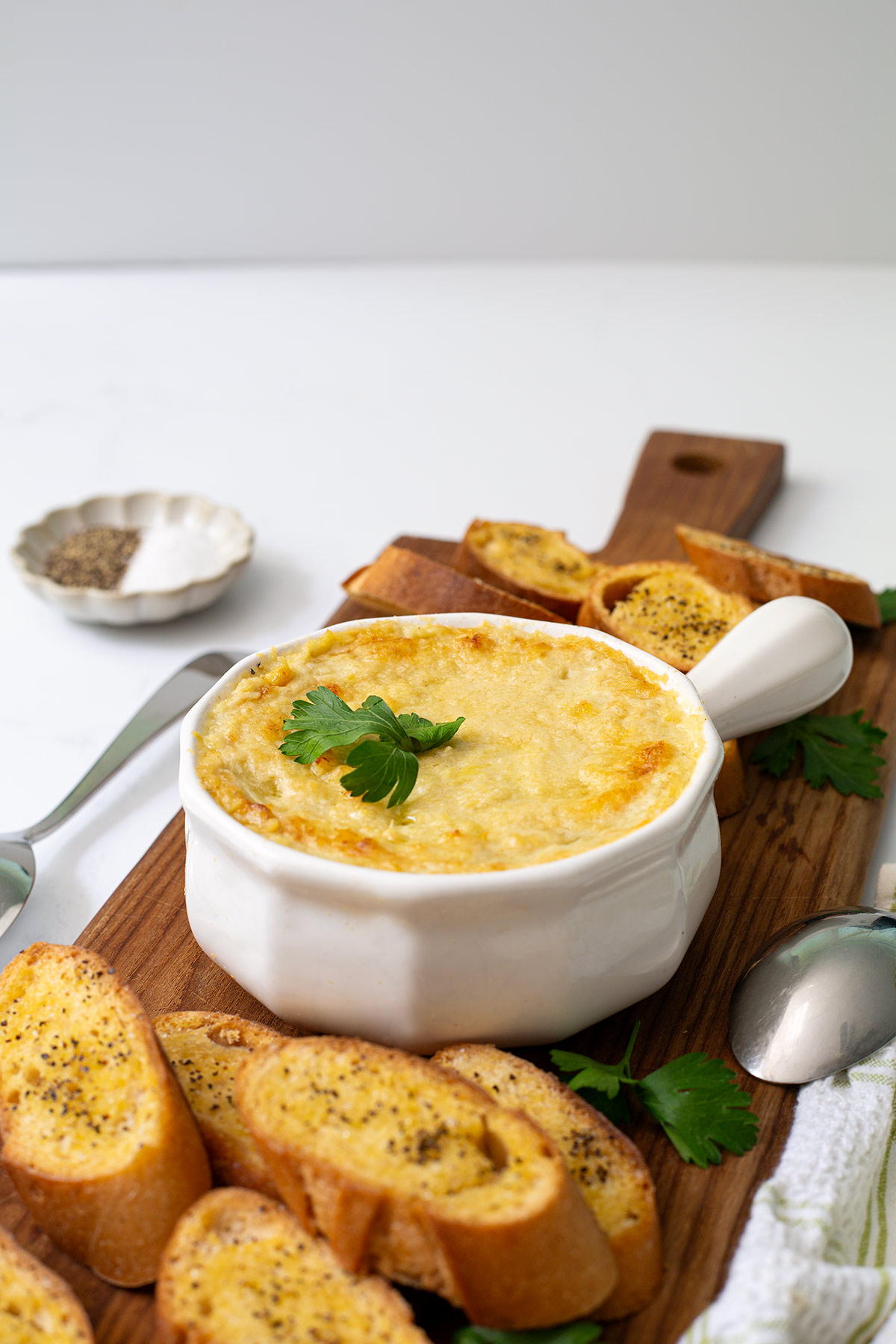The combination of artichokes and onion gives it texture and depth, while the aioli brings in that creamy, zippy garlic flavor that makes people keep coming back for “just one more bite.” And let’s not forget the cheesy top, it gets perfectly melty with those irresistible golden edges.